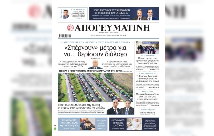 Εφημερίδες Απογευματινή: Η ταπείνωση Τσίπρα σε συνέδριο-παρωδία – Σε… ρόλο Ρασπούτιν ο Νίκος Παππάς – Το ταξίδι στο Κατάρ και η πρόσκληση του Μητσοτάκη στον εμίρη Πλούσιο ρεπορτάζ στην Απογευματινή Media.gr Newsroom26 Φεβρουαρίου 2024