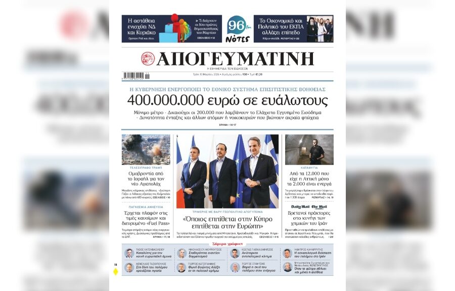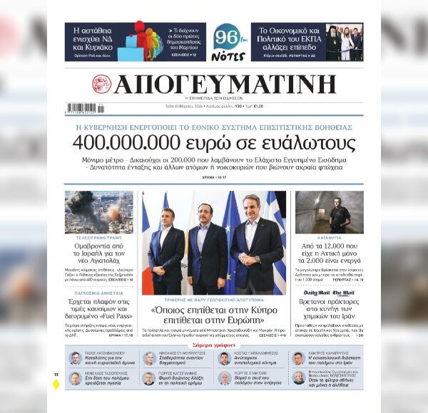 Εφημερίδες Απογευματινή: Ομόφωνα ο Κυριάκος Πιερρακάκης επικεφαλής της Ευρωζώνης, το πρόσωπο της ανάπτυξης στο τιμόνι του Eurogroup – Ιστορική απόφαση για τη χώρα με ελληνική σφραγίδα Πλούσιο ρεπορτάζ στην Απογευματινή που κυκλοφορεί Media.gr Newsroom12 Δεκεμβρίου 2025