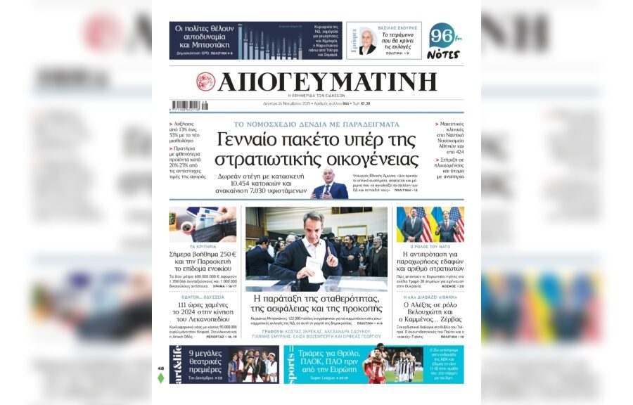 Εφημερίδες Διαβάστε σήμερα στην Απογευματινή: Η… εισφορά αλληλεγγύης φέρνει αύξηση συντάξεων – Τα σενάρια για το ψαλίδι αναλόγως των ποσών Πλούσιο ρεπορτάζ στην Απογευματινή που κυκλοφορεί Διαβάστε σήμερα στην Απογευματινή media.gr21 Οκτωβρίου 2023