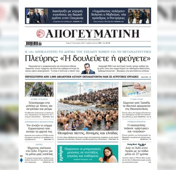 Εφημερίδες Διαβάστε σήμερα στην Απογευματινή: “Πόθεν Έσχες” – Μυστικά στο φως – Τα ψιλά γράμματα Πλούσιο ρεπορτάζ στην Απογευματινή Media.gr Newsroom7 Νοεμβρίου 2023