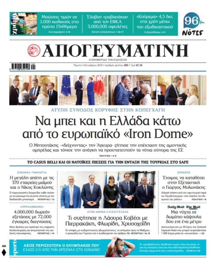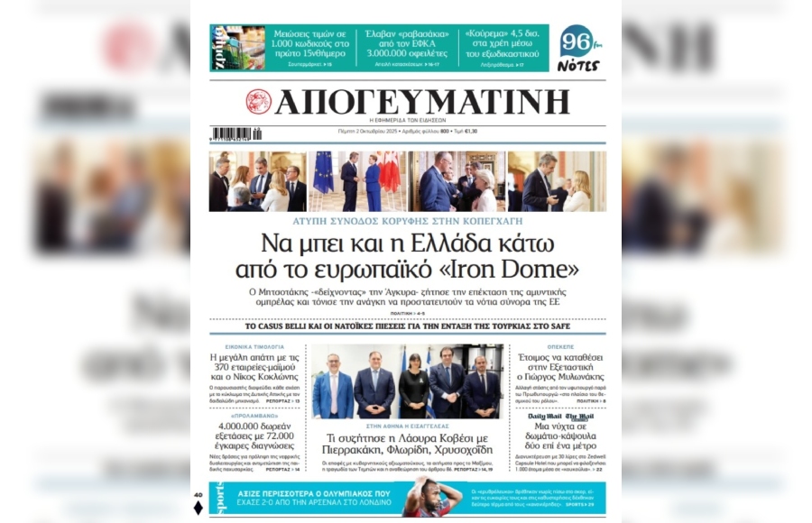 Απογευματινή: Άτυπη Σύνοδος Κορυφής στην Κοπεγχάγη – Να μπει και η Ελλάδα κάτω από το ευρωπαϊκό “Iron Dome”