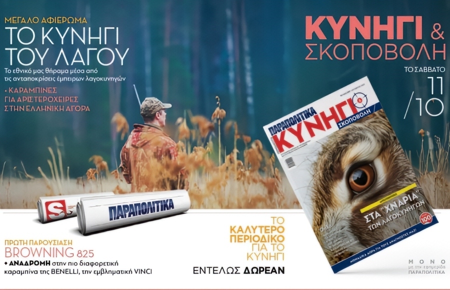 Μη χάσετε το νέο τεύχος από το καλύτερο κυνηγετικό περιοδικό το Σάββατο 11.10, «ΚYNHΓΙ ΚΑΙ ΣΚΟΠΟΒΟΛΗ», εντελώς δωρεάν, αποκλειστικά με τα ΠΑΡΑΠΟΛΙΤΙΚΑ.