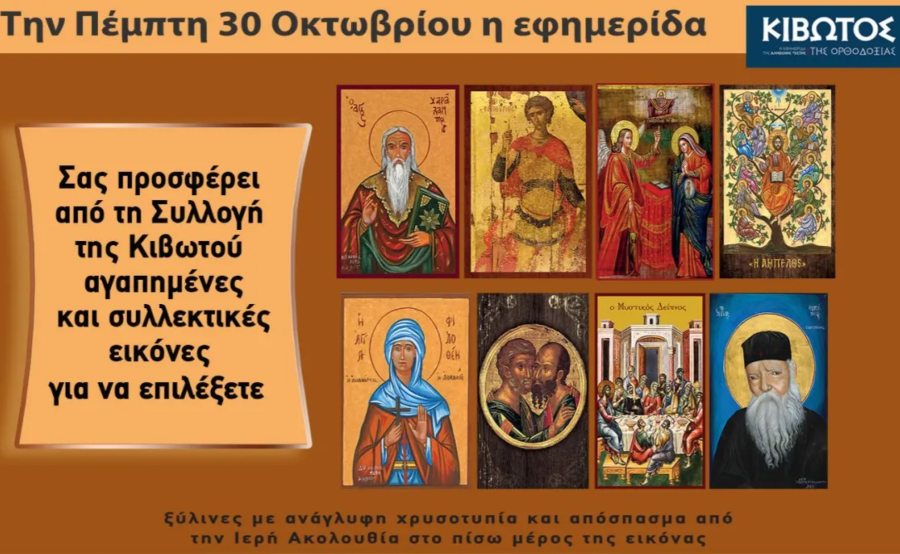 Την Πέμπτη 30 Οκτωβρίου η εφημερίδα Κιβωτός της Ορθοδοξίας σας προσφέρει πολλές αγαπημένες εικόνες, για να επιλέξετε.