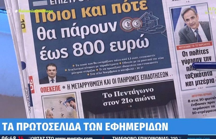 Τα σημερινά πρωτοσέλιδα των εφημερίδων παρουσίασαν το πρωί της Πέμπτης 30/10 στην εκπομπή «Κοινωνία Ώρα MEGA».