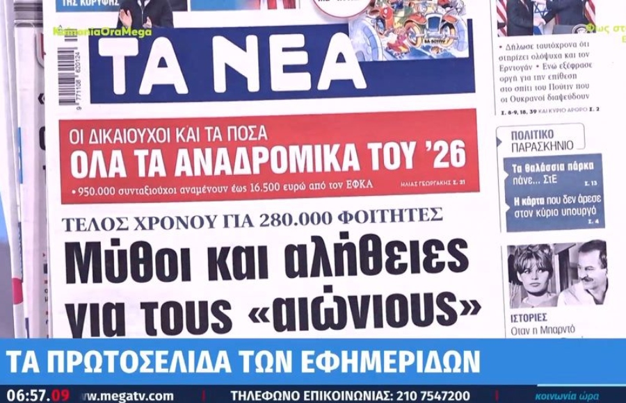 Τα σημερινά πρωτοσέλιδα των εφημερίδων παρουσίασαν το πρωί της Τρίτης 30/12 στην εκπομπή «Κοινωνία Ώρα MEGA».