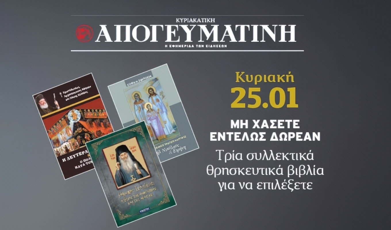 Μη χάσετε αυτή την Κυριακή 25/1 εντελώς δωρεάν με την κυριακάτικη Απογευματινή τρία συλλεκτικά θρησκευτικά βιβλία, για να επιλέξετε.