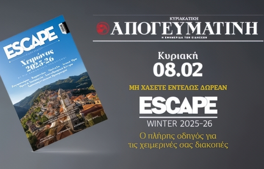 Μη χάσετε αυτή την Κυριακή 08.02 εντελώς δωρεάν αποκλειστικά με την Κυριακάτικη Απογευματινή, τον πλήρη οδηγό για τις χειμερινές σας διακοπές Escape Winter 2025-26!